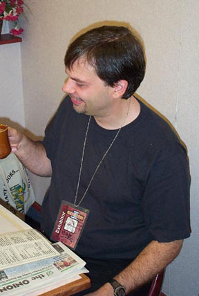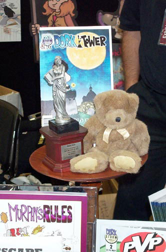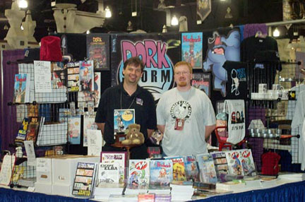 Aaron Williams and I man the Dork Storm Booth Saturday morning.
