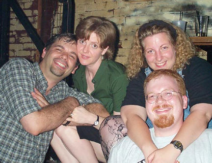 Judith and I and Aaron and Cristi, at the Dork Tower 5th birthday celebration at the Safe House…