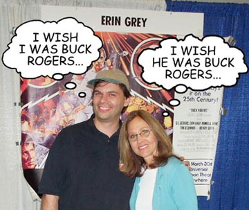 But I’ll tell more later. I’m exhausted. In the meantime, here are two highlights: meeting Erin Grey, of Buck Rogers fame (MAN, I had a crush on her when I was in high school) and having my wife, the lovely and talented Judith, show up Saturday and Sunday (MAN I’ve had a crush on her for the last eight years).