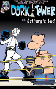 - Dork Tower #16 (Jan/Feb. 2002) has TWO great backup features: Greg Hyland’s Lethargic Lad begins its run as Dork Tower’s permanent backup, and Mark Smylie’s superb Artesia starts a three-issue mini-series. You’ve no idea how honored I am to be working with guys like Alex, Greg and Mark. And Wild Life, PvP and Nodwick will all be there as well. Looks like another 42-page issue.