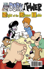 On top of that, Dork Tower #17 WENT to press this week. This is kind of a goofy April Fool’s issue, with a lot of craziness happening in it. In light of the fantastic reaction Dork Tower # 16 has been getting, I was worried how people would respond to the story in #17. But all the proofreaders have been wildly enthusiastic about it, and my wife, the lovely and talented Judith, nearly beat me because of the ending.