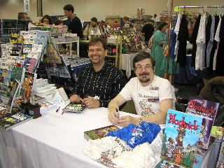 Later at the con, Steve Jackson and I did our first-ever joint signing at the Adventure Retail booth (below), attracting a seemingly never-ending queue. This meant a lot of folks got their Munchkin cards hand-drawn by yours truly, and then had them immediately made Tournament Legal by Steve. Joint signings with Greg Hyland (Lethargic Lad, Munchkin-Fu) were also a riot. If you haven’t checked out Greg’s work on Munchkin Fu amd Lethargic Lad, you really have to.