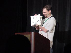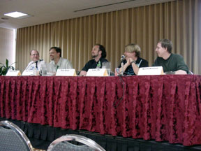 Special mention has to go out to a really hilarious comedy troupe that performed at the closing ceremonies: Soylent Theater (above), a sketch comedy troupe known for its “twisted science fiction geek comedy.” I was fortunate to be on a panel with them the day after I watched them perform for the first time – and it was great geek humor at its absolute finest. I can’t find a web page for the group, but in the Real World they seem to go by the name Look Ma No Pants, and are related to The Scrimshaw Brothers).