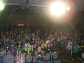 Convergence takes up most of the Bloomington Radisson hotel, and ALL of its rooms surrounding the indoor swimming pool! These are then converted into theme party rooms — probably about 40 or more in all, I’d guess, meaning that the craziness that goes on Friday and Saturday nights really does rival Bourbon St. as far as sheer spectacle goes. (HOUSE OF TOAST! CTHULHU COFFEE! HOUSE OF TOAST! CTHULHU COFFEE!)