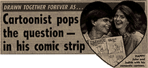 And then, on page 20, there was my romance. “Drawn together forever as…CARTOONIST POPS THE QUESTION – IN HIS COMIC STRIP.”