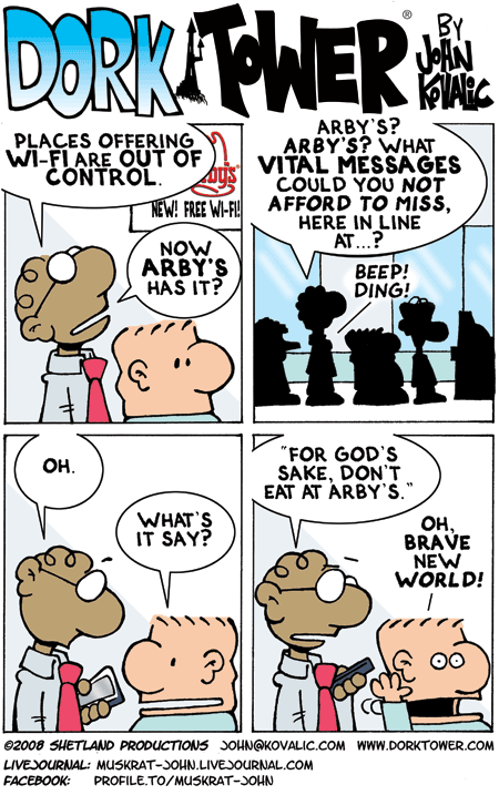 Nothing against Arby’s personally. I just was recently in one that was actually offering Wi-Fi, and I was amused by this. Oh, yeah – plus, they’re not really that good anymore. YMMV. But try a jamocha shake. Tell ’em John sent ya.
