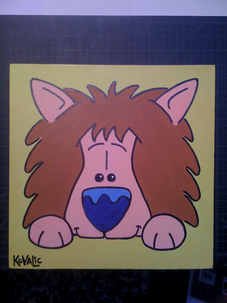 This was a 14″ x 14″ acrylic on vinyl painting I did, that inspired me to do some pieces for Louisa’s room. Like pretty much all of my work, it’s whimsical, but I also wanted to try out some stuff playing with Design and Color Theory (something I’m notoriously weak at).