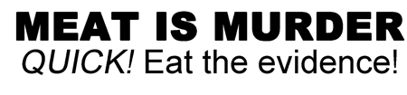 Yesterday, I tweeted a silly little thought that popped into my head: “MEAT IS MURDER: Quick! Eat the evidence!” My Smiths fandom may have had something to do with this. Ten years of Drawing sick, sick Munchkin cards may have been another factor.