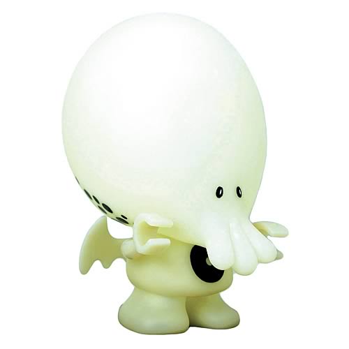 The “Great Cute One” has risen from beneath the ocean’s surface to give humanity tentacle hugs and gaping maw kisses! This 8″ vinyl toy, created by John Kovalic (Dork Tower) also comes with two Little Victims that fit in My Little Cthulhu’s snuggly grasp—and also pull apart to show their yummy red insides! This edition features a Glow-in-the-Dark phosphorescence, perfect for instilling insanity in your friends and loved ones at all hours of the night!