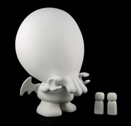 Now you can make it yours! The “Great Cute One” has come to give humanity tentacle hugs and maw kisses—but this time, you get to decide what he looks like! Each 8″-tall blank vinyl figure comes with 2 blank DIY Little Victims for you to customize as well! Designed by John Kovalic (creator of Dork Tower) the Do-It-Yourself My Little Cthulhu will bring out the artist in you!