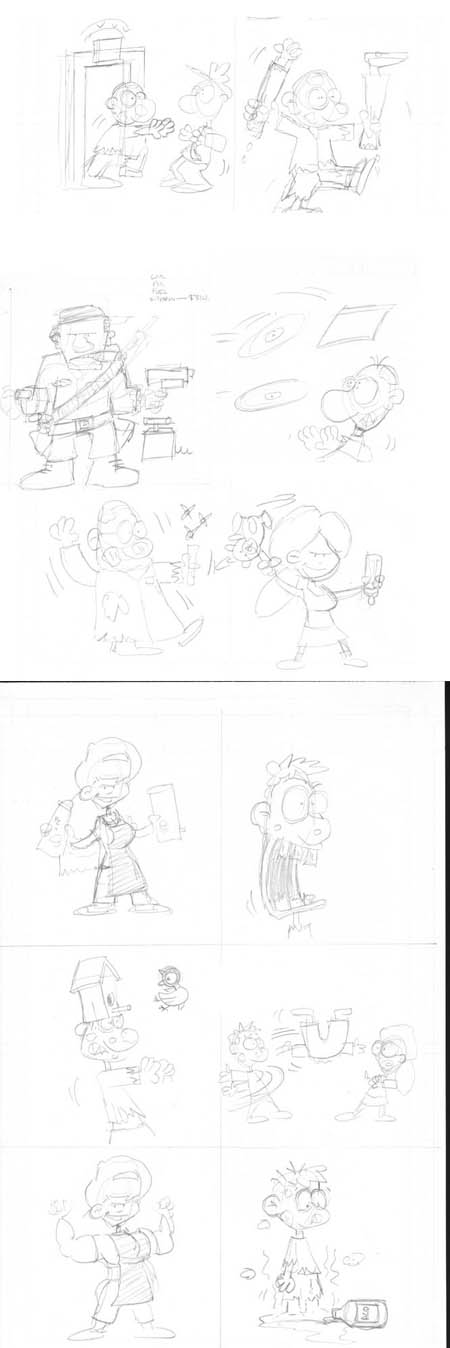 Munchkin Zombies is a bit different, though, as it’s a New Game introducing some New Concepts. So I did a bit of concept pencilwork, and sent Steve and Andrew the results. Not really for “Yes” or “No”s on individual cards, but more so they got a feel of how I was imagining the general look, feel and direction of the Munchkin Zombies art.