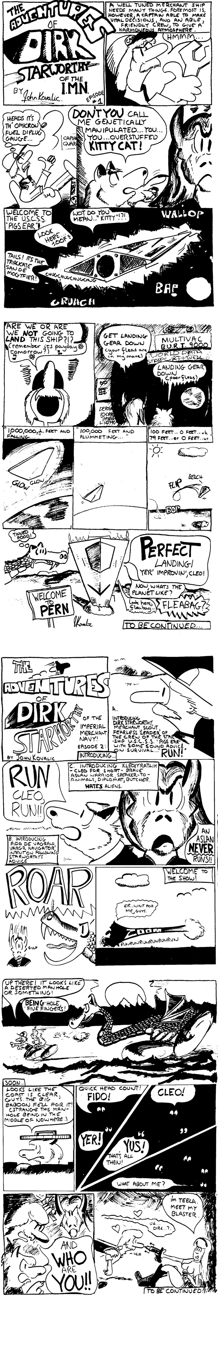 It wasn’t a very promising strip – a slight, poorly-drawn thing – and there’s no indication I was doing anything other than making it up as I went along. There’s no plot. I’m not sure there ever would have been a plot. Pern? Why the hell did I have them end up on Pern? But there you go.