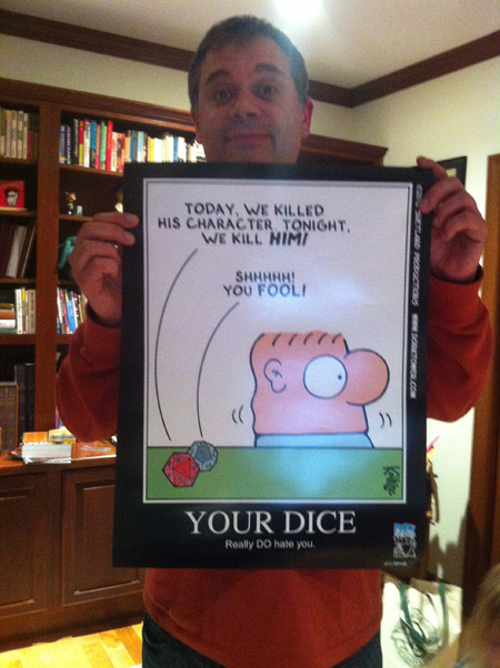 The “Your Dice Really Do Hate You” posters arrived, yesterday! Huzzah, huzzah!