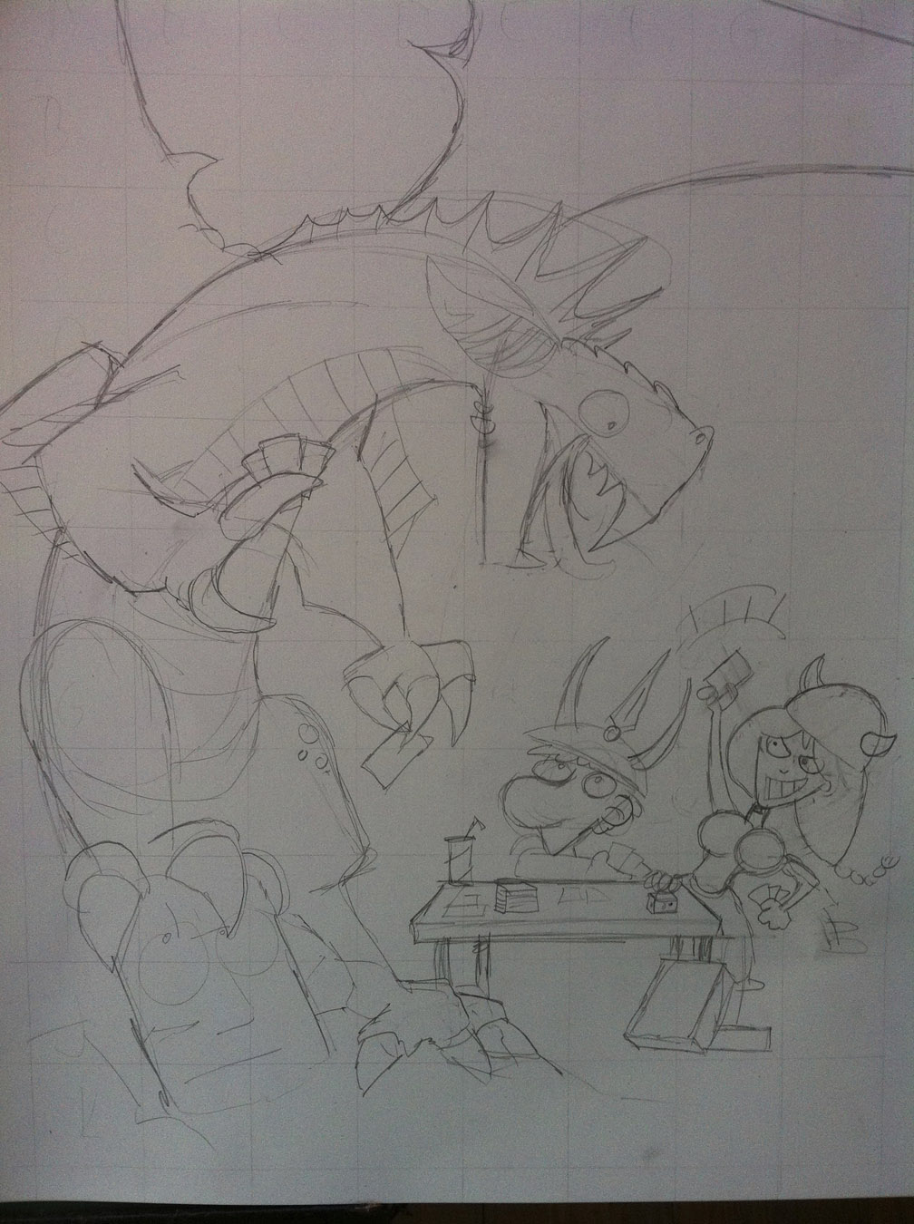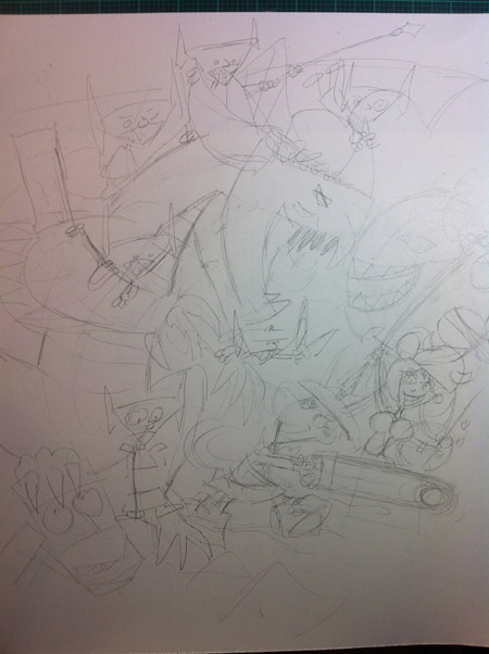 Click the above image, and you’ll see a larger version of it. Of course, you won’t see much more: my initial pencil sketches are extraordinarily rough, but in my mind’s eye, I tend to see what I need to see from them.