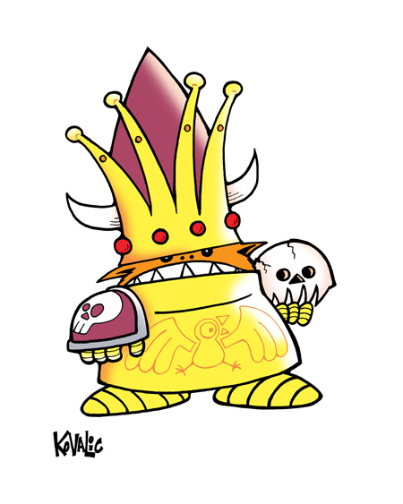 Believe it or not, I think this is only the second time I’ve drawn King Torg, that lovable, berserk bundle of orange brutality who leads the Kobolds through a cunning combination of violence, violence and more violence.