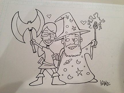 Moving away from simple sketches, here’s Monte Cook and Jen Page of GeekSeekers fame: