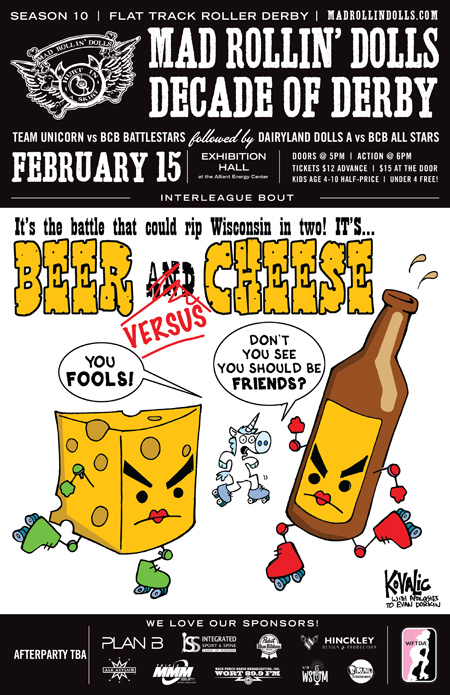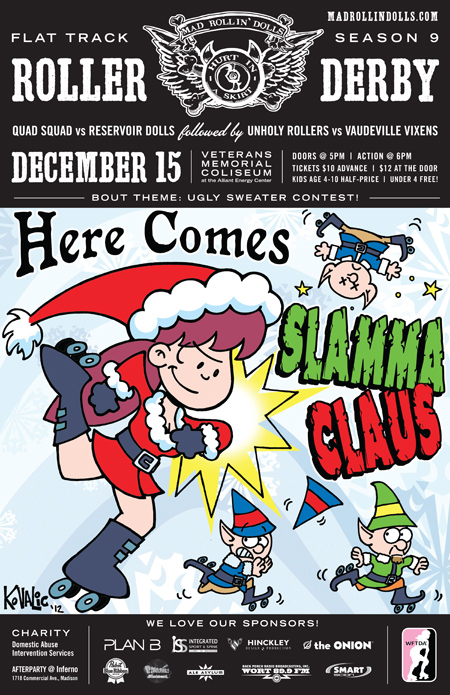 Check out the Mad Rollin’ Dolls’ schedule, if you get the chance, and are in the Madison area. You can often find me there, and there will be signed posters with my doodlings on them, available at the February 15 bout.