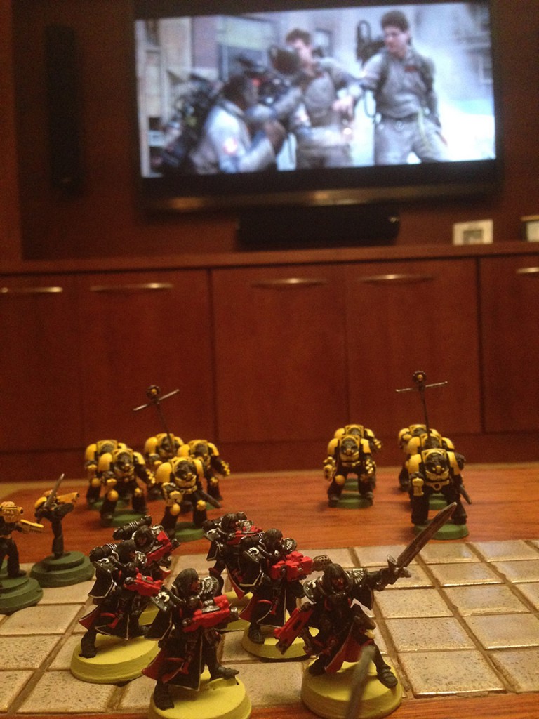 Later that night, I was basing some old Warhammer 40,000 miniatures, watching Ghostbusters, and drinking a Central Waters bourbon barrel barleywine. As you do.