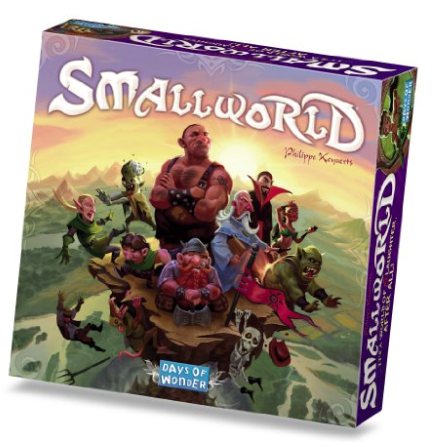 Here is what the Small World game, by Days of Wonder, looks like. I love this game. I also suck at it. Hard. I haven’t figured out the best strategies for the various Race and Special Power combos. But I have a blast every time I play.