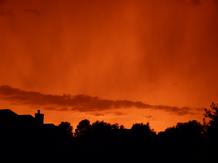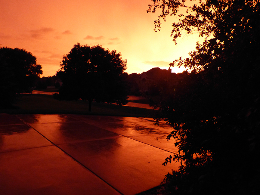 The storms stopped overnight. The sunset wasn’t quite the bookend for them, though it should have been. The temperatures have fallen back to the 70s, and – according to a certain Local TV Weatherman, anyway – the next week looks to be one of those unbelievably perfect summer weeks Walt Whitman would write poems about.
