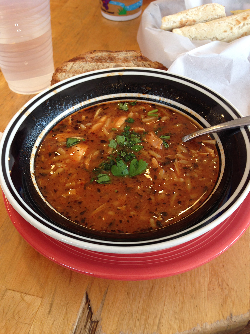 The ZuZu Cafe, a local eatery that Daughter, Age 5 and I visit whenever we go to the zoo, serves an unassuming little soup I just love, called Chicken Jarré. It reminds me of some of the soups I had in Morocco, and it’s one of those small, delightful meals around town that simply makes me smile whenever it’s in front of me.