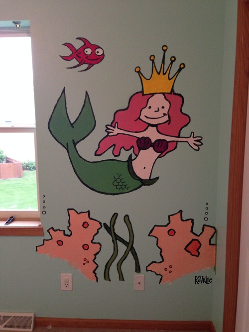 REASON TO BE HAPPY PART ONE: Andrew Shell used one of the drawings from the Embrace the Squee charity coloring book, for the nursery he’s readying. He projected the picture on the wall, and then painted it in. That pretty much made my day!