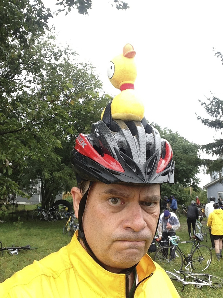 So to put some undue pressure on myself, I upped my personal Team Muskrat goal to $7,500. Which, I’ll admit, SCARES THE HECK OUT OF ME! Even more so than doing a 60-mile ride with a duck on my helmet again (which I am now obligated to do, because we passed that pledge level weeks ago.)