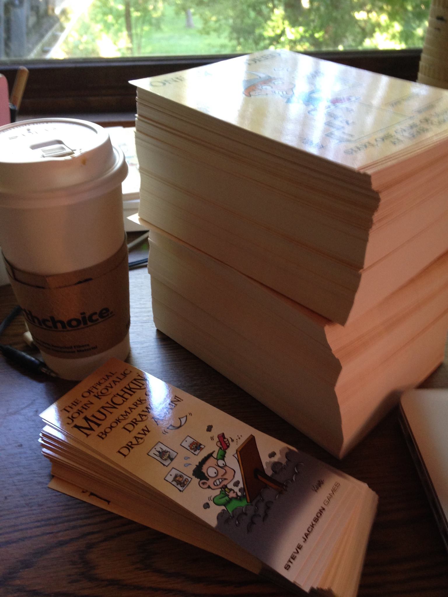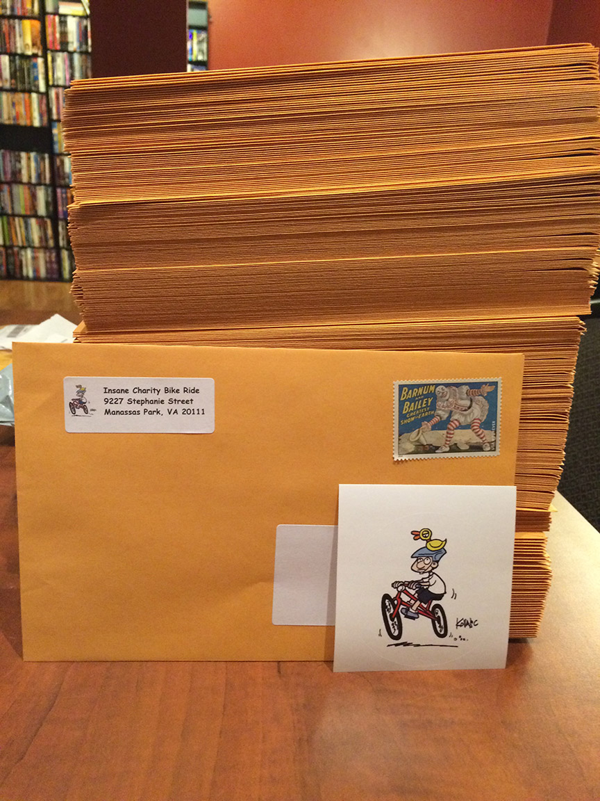 In other news: Thanks to the generosity and hard work of David Michael, the Bike the Barns postcards and bookmarks have gone out to backers! Here’s what almost 400 pieces look like: