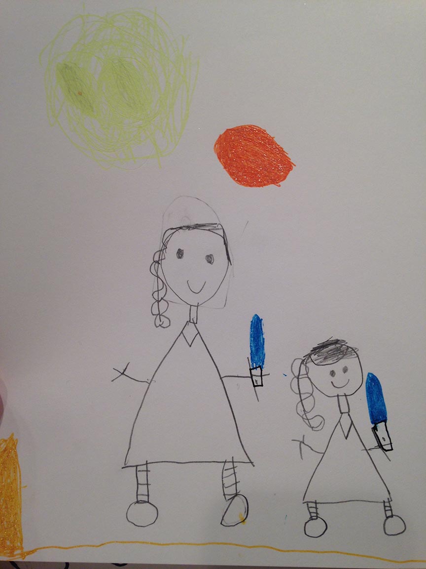 Daughter, Age 5, loves drawing with me, early in the mornings. I find this Daddy/Daughter Drawing Time one of the most delightful times of my day. Here’s what she drew, this morning, at the same time, by my side – Obi-Wan and Anakin on Tatooine: