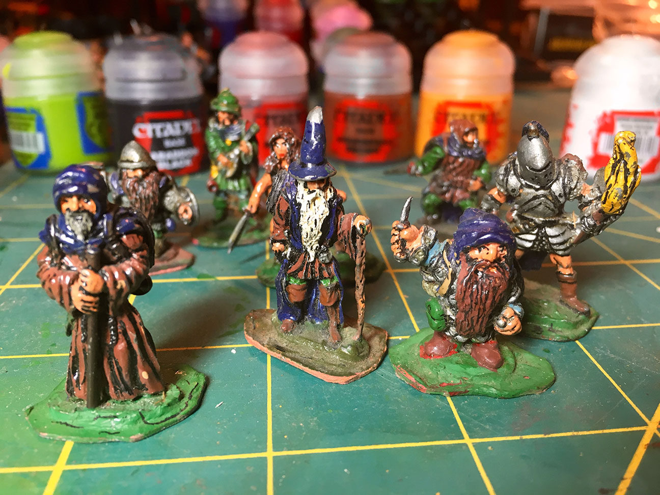 The last couple of evenings, I’ve been painting some 25mm minis for an upcoming D&D 5e campaign. Or rather, repainting old minis from college.