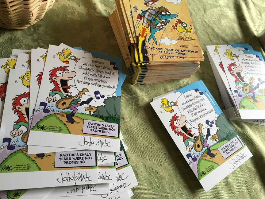 Anyway, coupled with the many hundreds of Munchkin Charity Postcards and Pat Rothfuss limerick mini-prints I recently signed, all Insane Charity Bike Ride 2016 fulfillment items are finished.