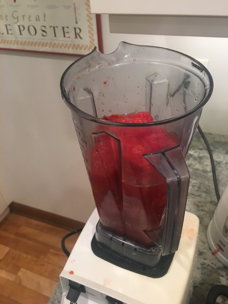 A relatively thick purée results. (Add the tomato liquor back in, if you’re going for a soup instead of a sauce).