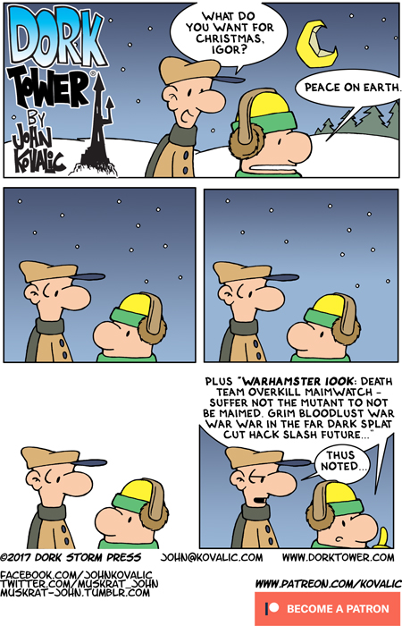 FirstPreviousNextLast Posted on December 19, 2017 by John Kovalic HEY! You may have noticed this cartoon is now Patreon-Supported! Check it out!