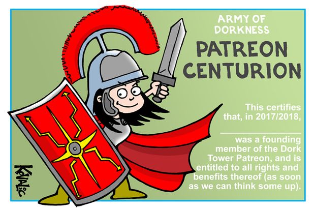 SPEAKING OF PATREON, there’s still time to get an Army of Dorkness PATREON CENTURION card!