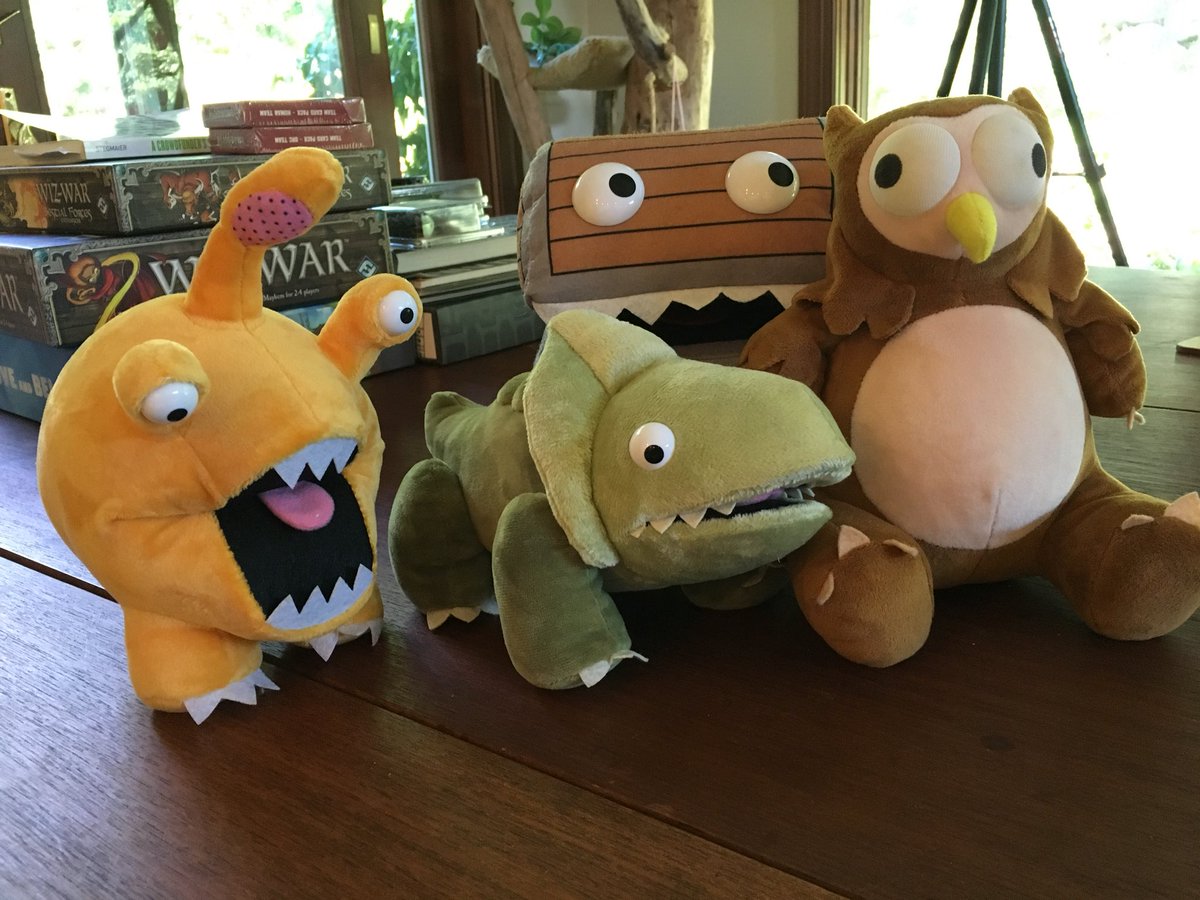 - A $500 pledge the complete set of Gamehole Con plushies from the last four years! That’s one Owlbear (from 2015 – long sold-out), one Bulette (2016 – also sold out), one Mimic (from 2017) and this year’s Otyugh! Plus all pins, buttons, a piece of Munchkin art, the Army of Dorkness enlistment card, the current postcard, and all five previous postcards. (4of 5 remaining)
