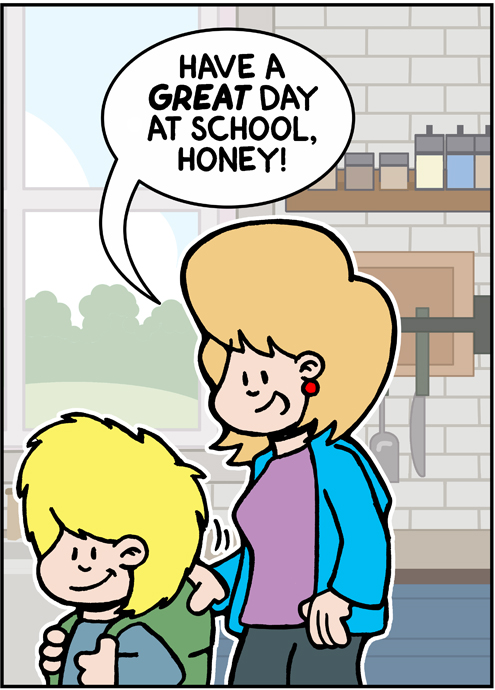 The “Have a great day at school” strip was originally a far busier one, originally, which I pared down to its core concept. It seemed necessary, stripping away everything but the rawest emotion.