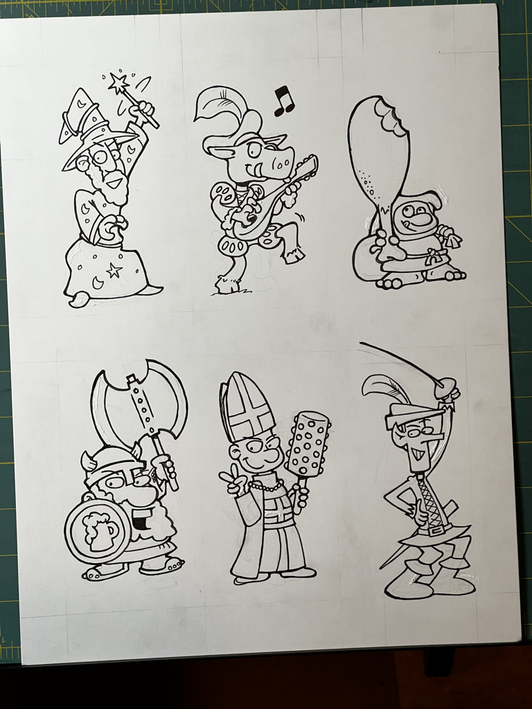 11) $3,000 PLEDGE LEVEL: I will paint a cartoon portrait of you, and/or your family (up to five members), and/or your pets, either digitally (for use on cards, etc.) or physical (acrylics on 16” x 20” stretched canvas). You also get a piece of Munchkin art, the current postcard, the pdfs and the badge (along with any stretch-goal goodies). (1 of 2 remaining)
