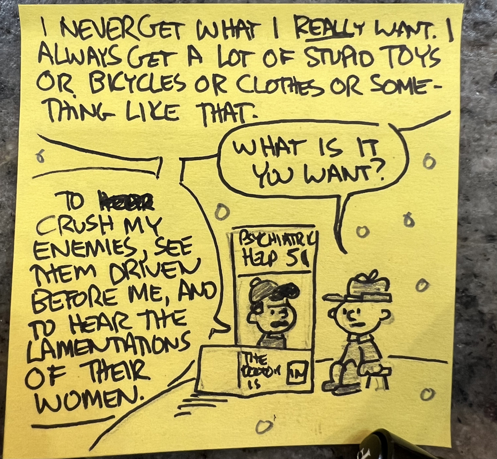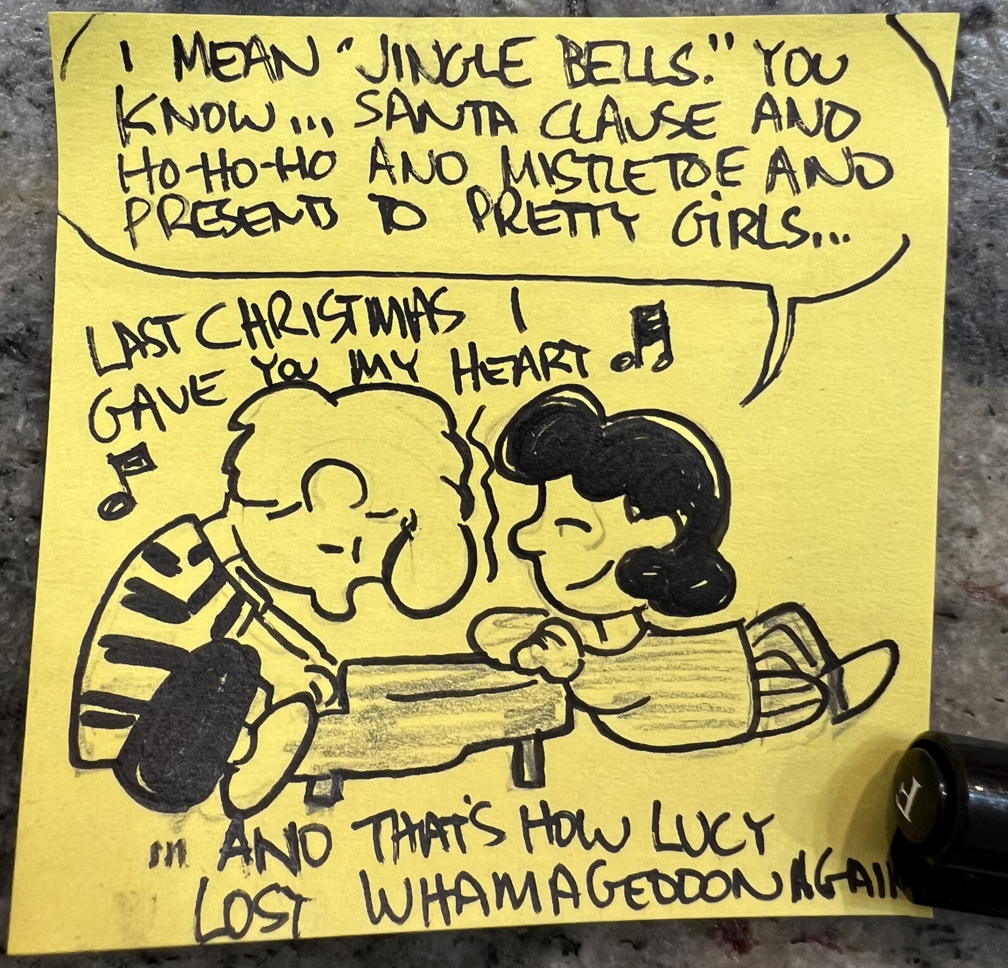 Over at the Dork Tower Patreon, I’ll often upload the Post-It Lunch Notes I draw for Teen, Age 15.