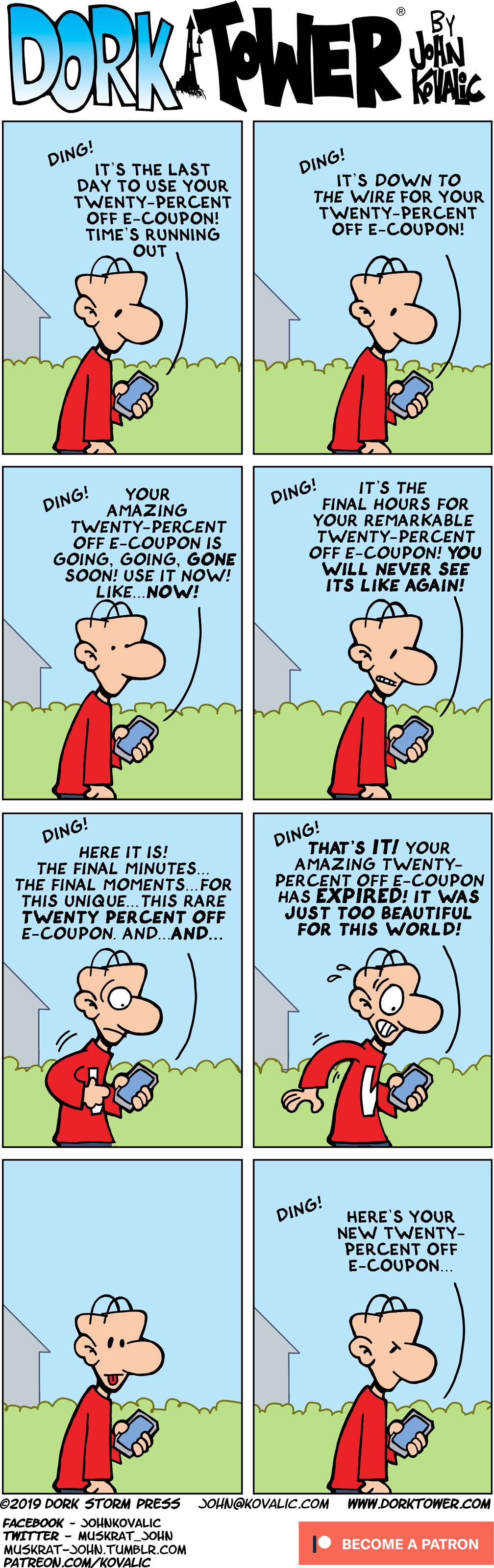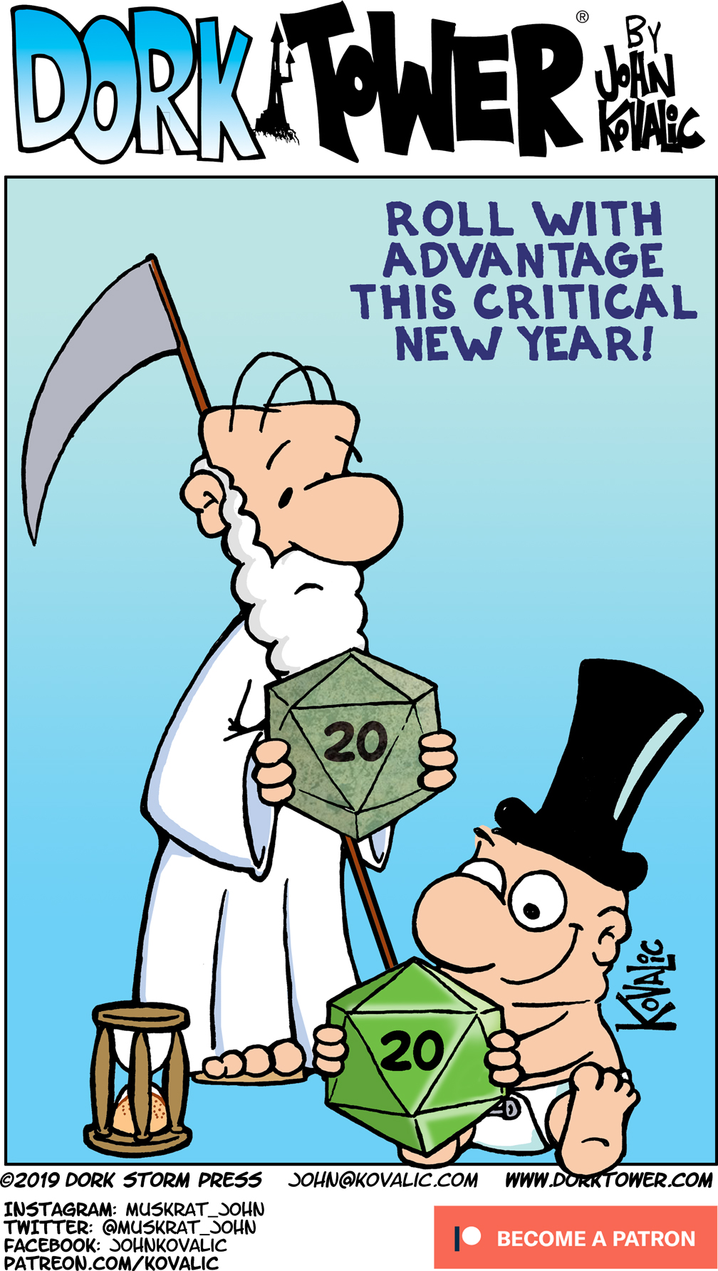 New DORK TOWER strips upload three times a week, thanks to its generous PATREON supporters! The goal is five strips a week! Enlist in the Army of Dorkness today, and help!