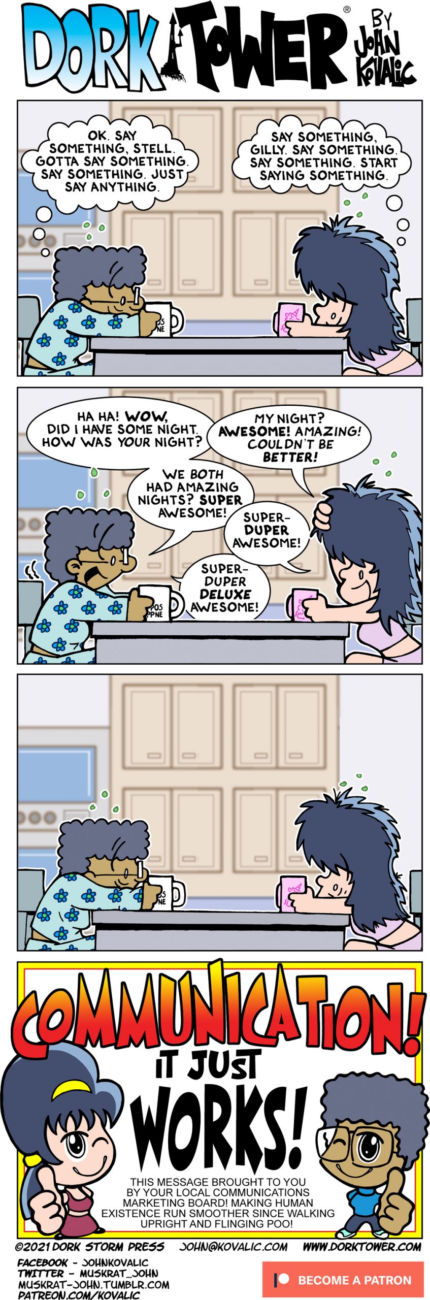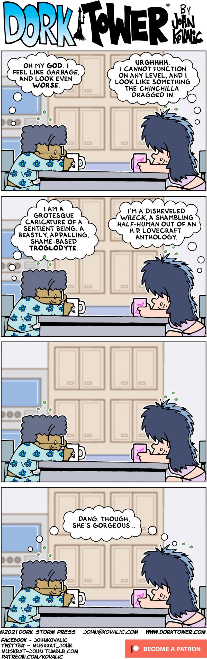 DORK TOWER is add-free, thanks to its supporters on Patreon! The comic updates Mondays, Wednesdays and Fridays, thanks to them. The next goal is four strips a week! Enlist in the Army of Dorkness today, and help!