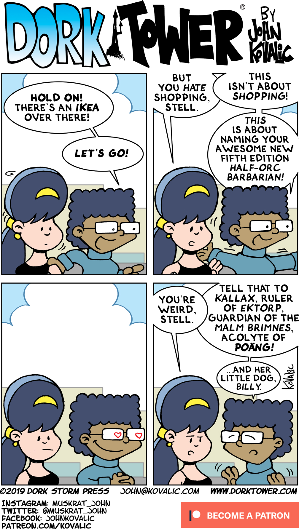 Dork Tower is 100% reader supported. Join the Army of Dorkness today, and help bring more Dork Tower to the world! By becoming a Dork Tower Patreon backer, you get John’s everlasting gratitude (and also swag, commentary, bonus strips, and more swag), but, critically, you’ll help us reach our next goal – three comics a week!