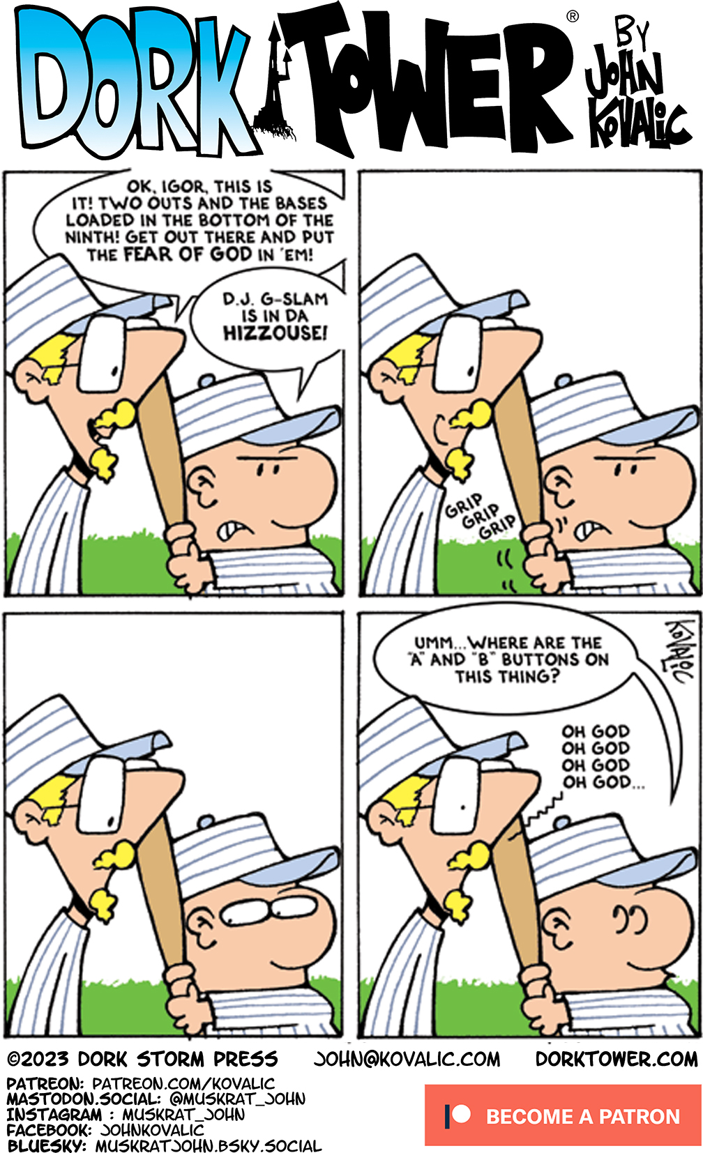 Help keep DORK TOWER going  – join the DORK TOWER Patreon and ENLIST IN THE ARMY OF DORKNESS TODAY! (We have cookies!)