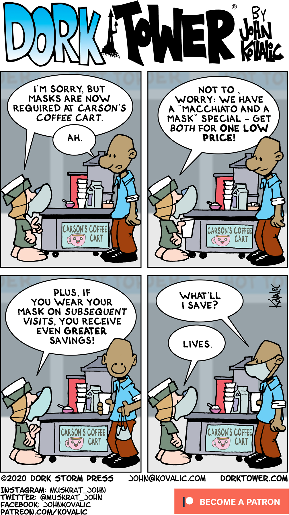 Dork Tower now runs Monday/Wednesday/Friday, thanks to reader support. The next goal is a large-format Sunday strip! Help us reach four Dork Towers a week! You’ll get swag, commentary, bonus strips, community…and our everlasting gratitude! Enlist in the the Army of Dorkness today!
