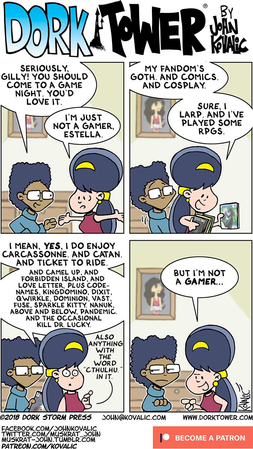 Dork Tower is 100% reader supported. Join the Army of Dorkness today, and help bring more Dork Tower to the world! By becoming a Dork Tower Patreon backer, you get John’s everlasting gratitude (and also swag, commentary, bonus strips, and more swag), but, critically, you’ll help us reach our next goal – three comics a week!