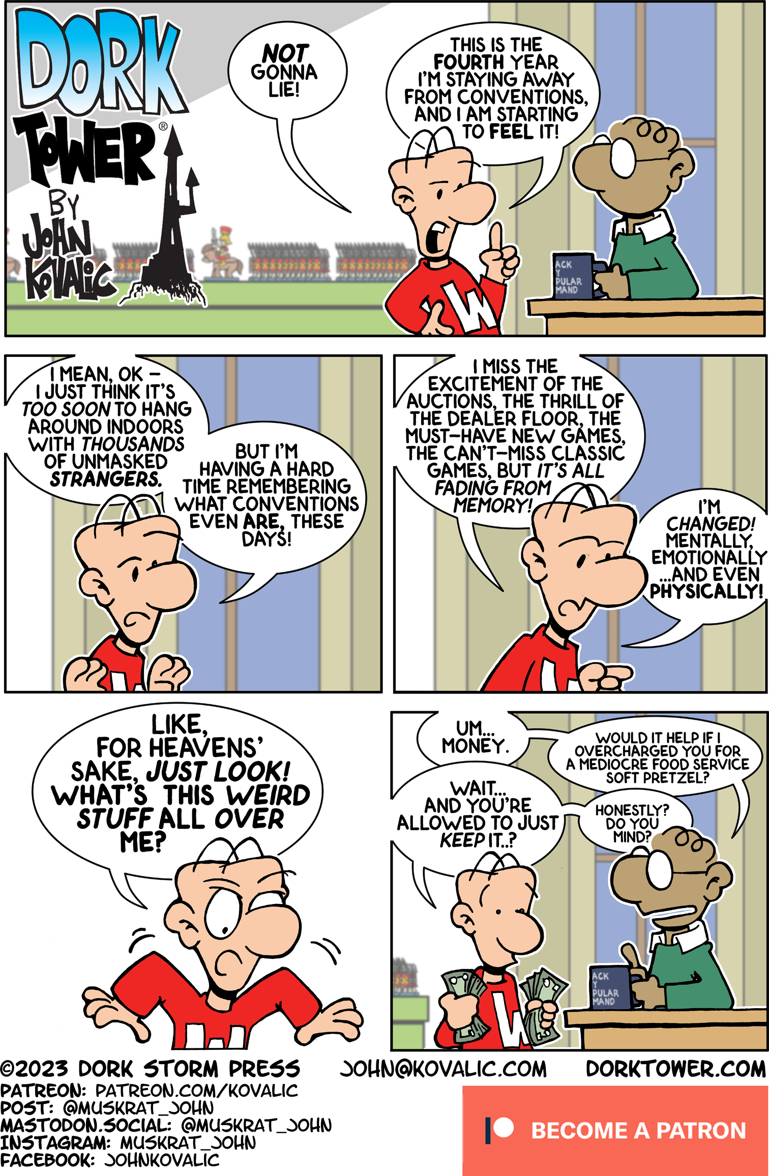 DORK TOWER is updated three times a week, thanks to its generous PATREON supporters! Enlist in the Army of Dorkness today, and help!