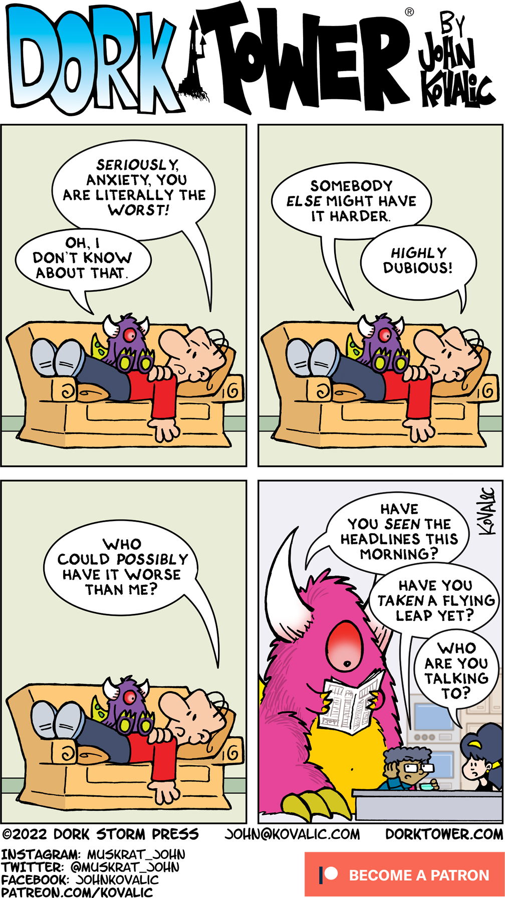 Dork Tower is updated Mondays, Wednesdays and Fridays, thanks to its amazing Patreon supporters. Support the DORK TOWER PATREON, and help bring more Dork Tower to the world (you also get swag, our eternal gratitude, and more)! Even a $1 pledge is appreciated!