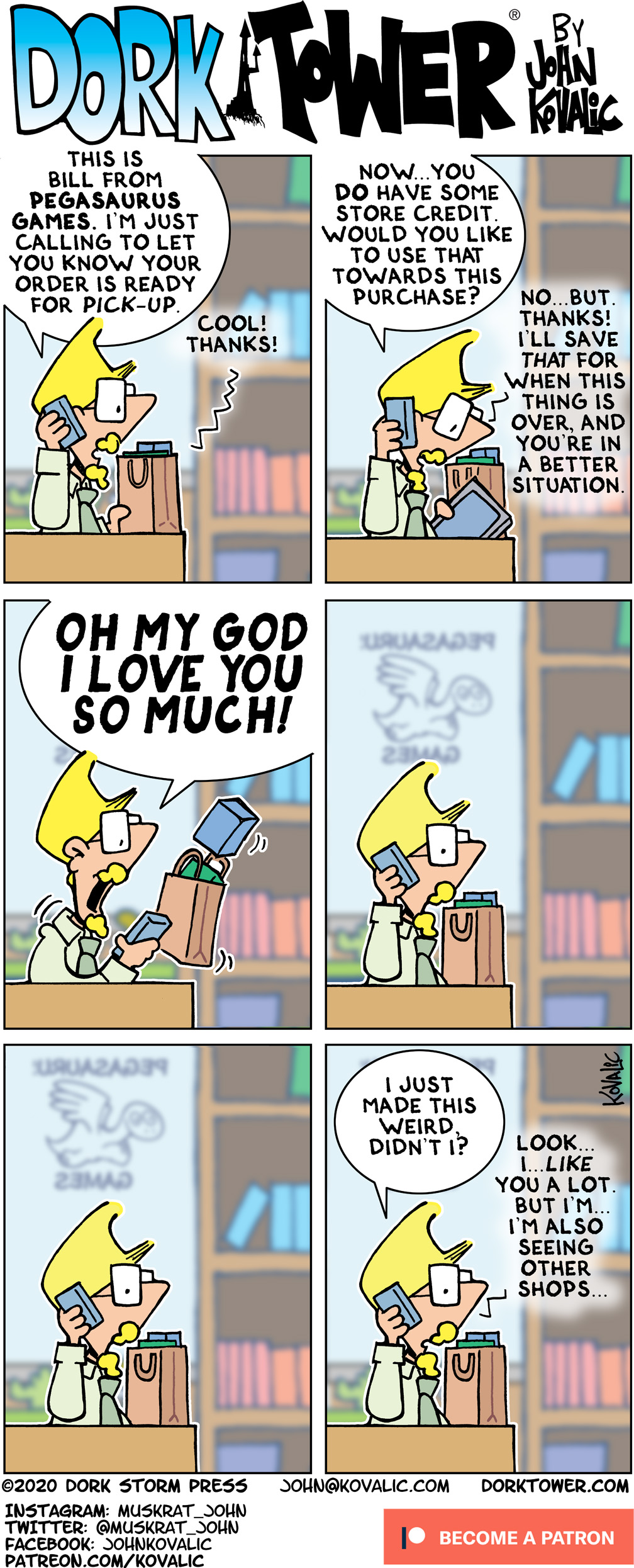Dork Tower is updated Mondays, Wednesdays and Fridays, thanks to its amazing Patreon supporters. Help bring more Dork Tower to the world – support the DORK TOWER PATREON, (you also get swag, our eternal gratitude, and even more)! Lots of different levels to choose from, with many rewards, but every pledge helps!