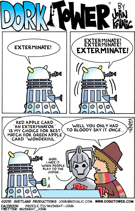 In case today’s strip seems a bit random, check out DORK TIDINGS, in which I blog a bit about the apparent random nature of today’s cartoon, and how rather brilliant Paul Cornell is.