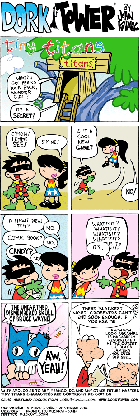 Someone wrote in to let me know that the link to the first strip is broken, and the archives on DorkTower.com are, and I quote, “crap.”