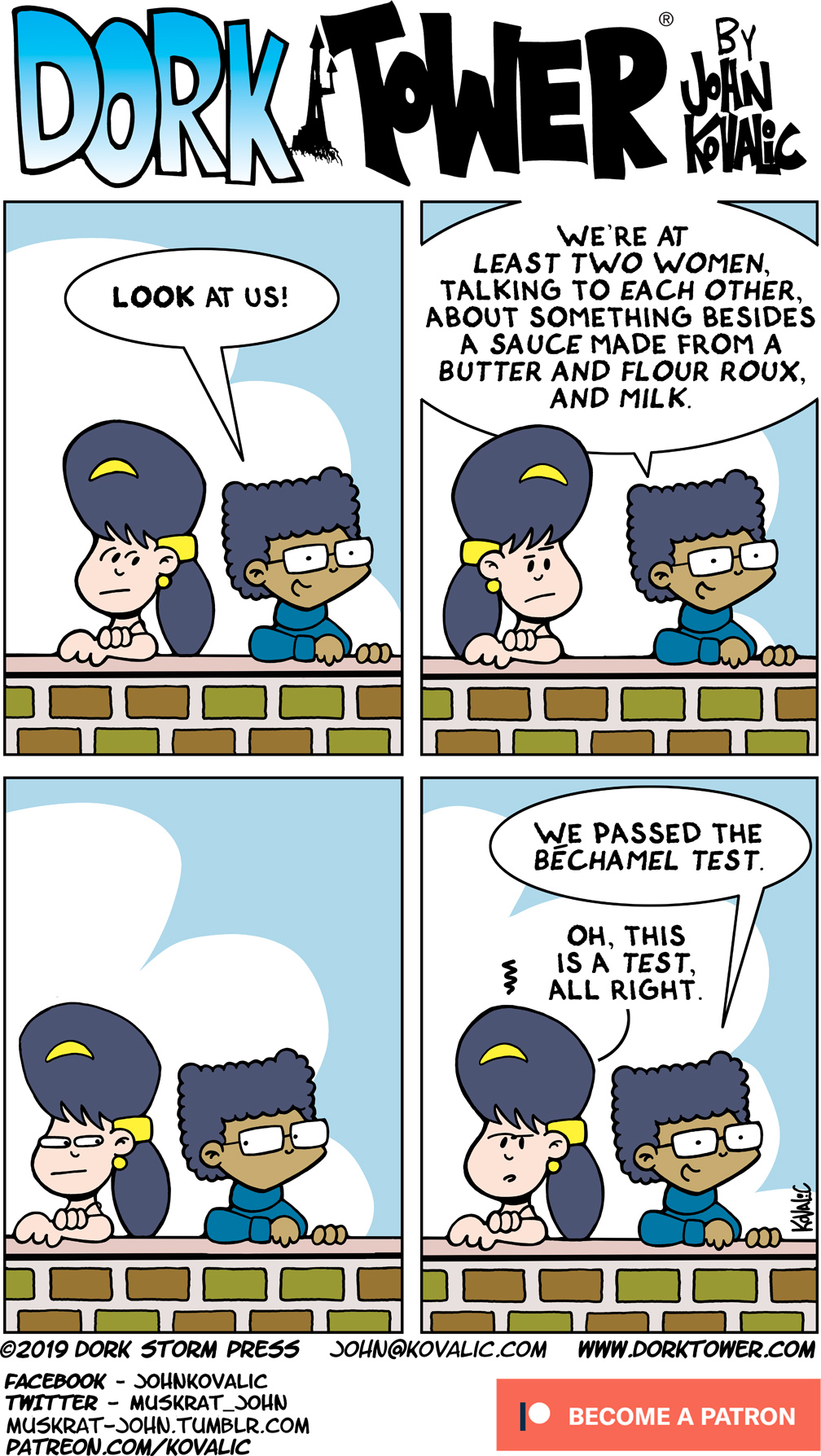 DORK ADDENDA: The Bechdel Test; Bechamel Sauce.